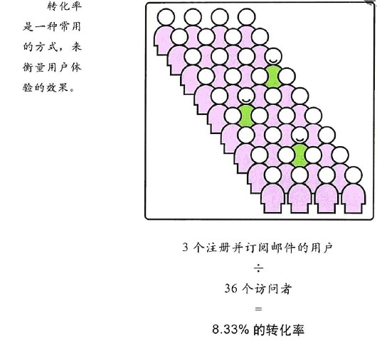 在任何一个用户有可能掏腰包的网站上,都可以用转化,率来衡量你的成果,不管销售的是书、猫食,或是订阅网站本身的内容。与简单的销售数字比较,转化率可以让你更强烈地感受到在用户体验上的投入所得到的回报。不能成功地让人们理解你的网站,这也会损害到销售的业绩。转化率可以跟踪你究竟成功地使多少访问者掏出了腰包。