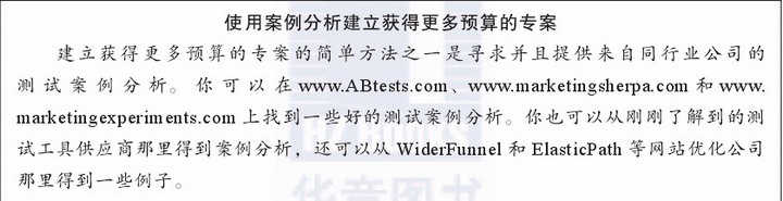 如果你无法在第一次尝试中说服高层管理人员,你可以尝试从外部顾问人员中获得帮助,让他们分析你的网站的潜在测试,并且让他们参与演示文稿的制作。高管人员常常更可能信任来自测试和优化公司的专家,而不是在这个项目中有既得利益的公司内部人员 。
